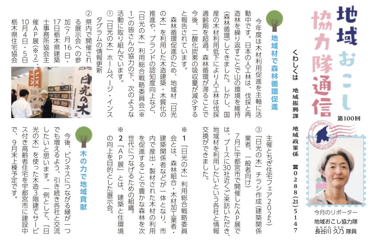 広報にっこう令和7年10月号の「地域おこし協力隊通信」で、長谷川隊員の活動が紹介されています。 ぜひご覧ください。 広報にっこうは日光市HPからもご覧いただけます。→日光市/広報にっこう