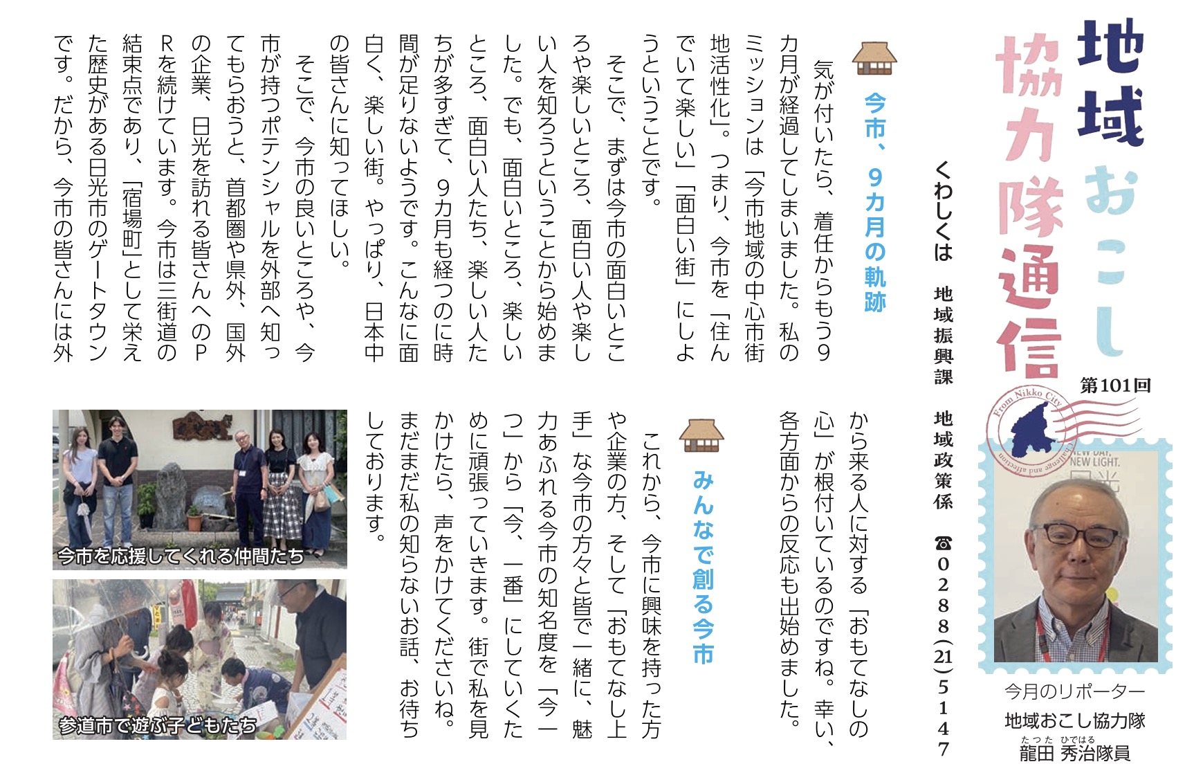 広報にっこう令和7年12月号の「地域おこし協力隊通信」で、龍田隊員の活動が紹介されています。 ぜひご覧ください。 広報にっこうは日光市HPからもご覧いただけます。→日光市/広報にっこう