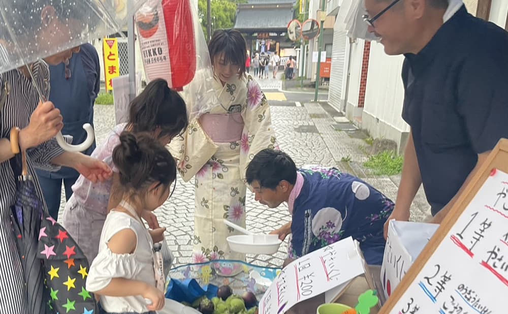 まずは「やりたい」を「やってみよう」として、如来寺さんの七夕に合わせて参道を使った「参道市」と、ニコニコ本陣広場でイベントを開催してみました。
