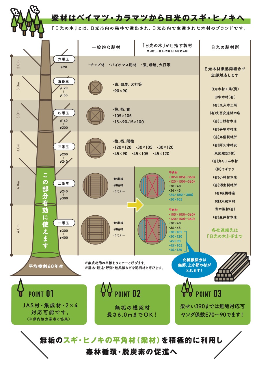 「日光の木」は、日光市内の森林で産出され、市内で製材された木材ブランドです。